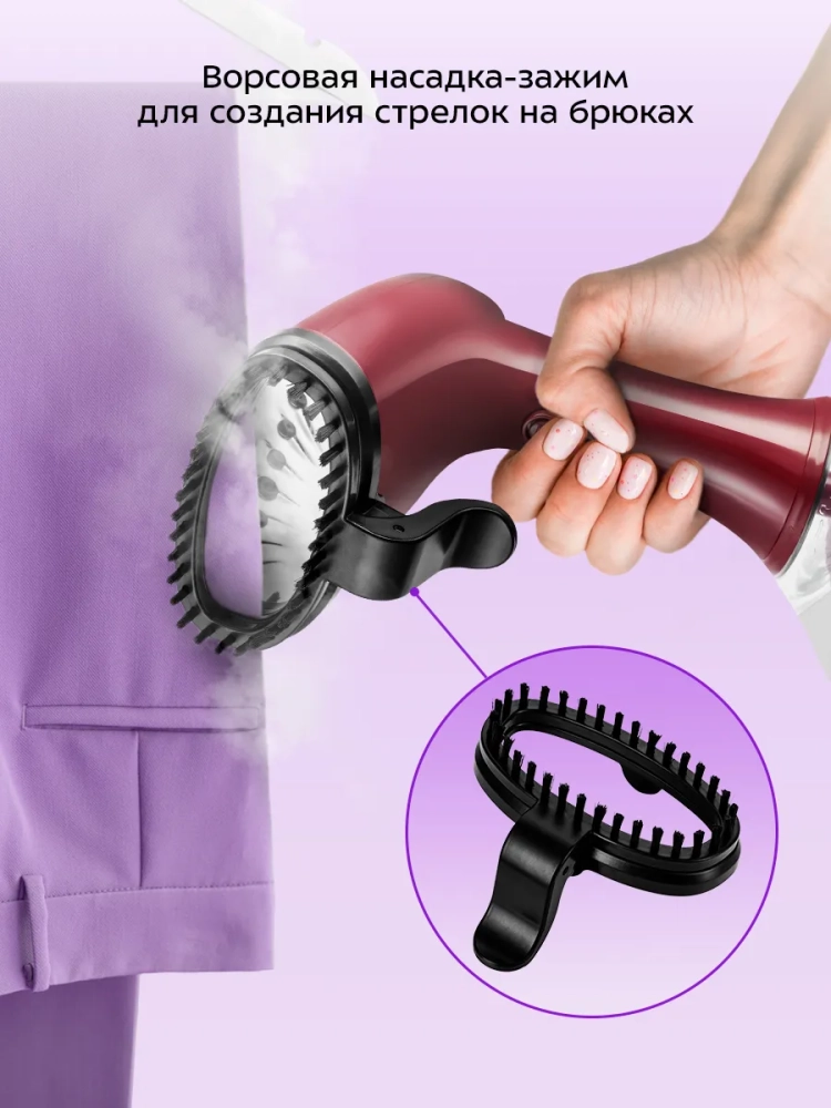 Отпариватель КТ-9289 оснащен тремя уровнями подачи пара для разных типов ткани. В комплекте предусмотрена ворсовая насадка-зажим, которая поможет очистить вещи от пыли, ворса, волос и шерсти домашних животных, а также поможет создать стрелки на брюках.