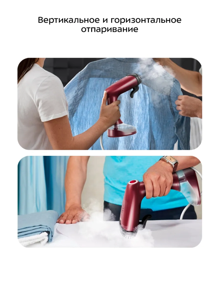 Ручной отпариватель — более функциональное и универсальное устройство, чем утюг. Под действием пара волокна ткани не растягиваются и не сжимаются, как под воздействием утюга, а приобретают объемность и эластичность. Отпариватель не деформирует ткани и не оставляет заломов или лоснящихся пятен на одежде. Помимо отпаривания одежды вы можете отпарить занавески и портьеры (для этого их не обязательно снимать), обивку мягкой мебели, матрасы или мягкие игрушки. При этом вы не только разгладите складки и вернете форму вещам, но освежите и продезинфицируете их, так как горячий пар хорошо убивает пылевых клещей и другие микроорганизмы.