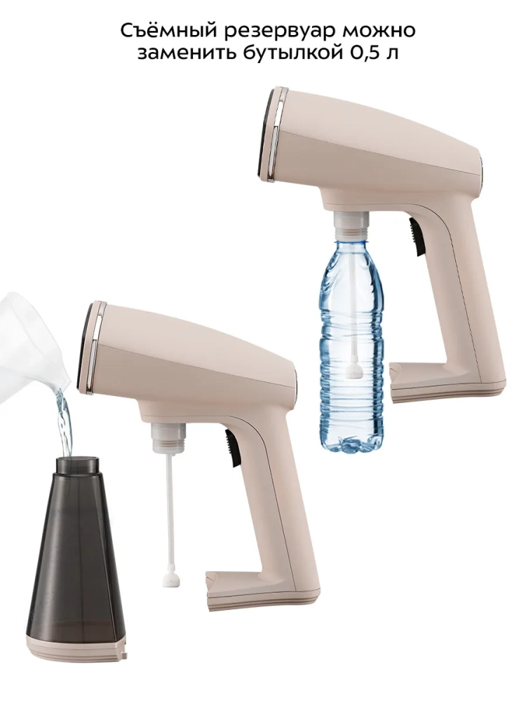 Трубка для забора воды позволяет использовать отпариватель с бутылками вместо резервуара для воды. Трубка подходит для бутылок с диаметром горлышка 28 мм. Для использования подойдут бутылки для воды объемом 0,5 л, которые вы можете купить в любом магазине. Например, это удобно в поездках: не нужно везти с собой резервуар. Вы можете использовать бутылку большего объема, чем резервуар, когда вам необходимо отпарить много вещей.