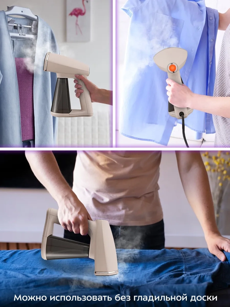 Ручной отпариватель — более функциональное и универсальное устройство, чем утюг. Под действием пара волокна ткани не растягиваются и не сжимаются, как под воздействием утюга, а приобретают объемность и эластичность. Отпариватель не деформирует ткани и не оставляет заломов или лоснящихся пятен на одежде. Помимо отпаривания одежды, вы можете отпарить занавески и портьеры (для этого их необязательно снимать), обивку мягкой мебели, матрасы или мягкие игрушки. При этом вы не только разгладите складки и вернете форму вещам, но и освежите и продезинфицируете их, так как горячий пар хорошо убивает пылевых клещей и другие микроорганизмы.