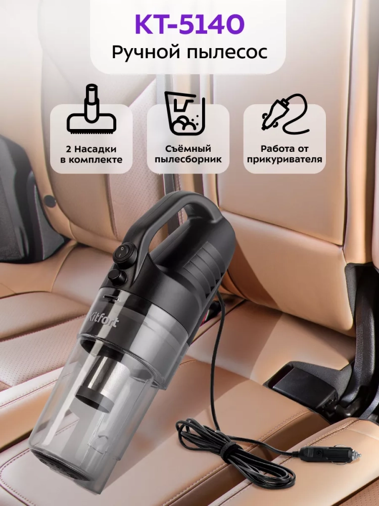 КТ-5140 станет вашим главным помощником в уборке салона автомобиля, который поможет навести чистоту на всех поверхностях и труднодоступных местах.