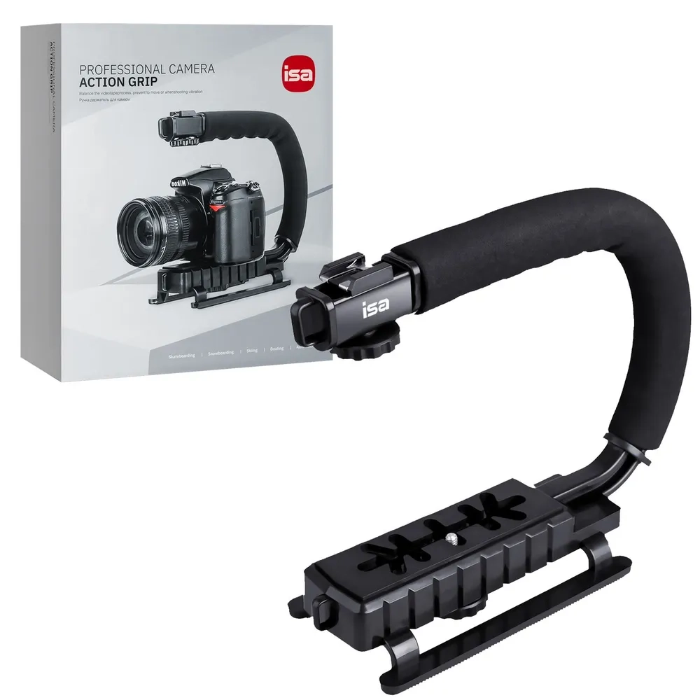 Портативный комплект стабилизатора кронштейна с адаптером для всех зеркальных фотокамер и домашних DV-камер, идеально подходит для повышения стабильности фото и видеосъемки, делая изображение более четким, профессиональным. Мягкая губчатая ручка значительно повышает комфорт и снижает утомляемость при длительной съемке. Нижняя платформа, на которую, как правило, крепится съемочная техника имеет большое отверстие в форме разветвленного рисунка. Это дает возможность перемещать штатный крепеж с винтом формата 1/4 в разные стороны, чтобы установить камеру и аксессуары.