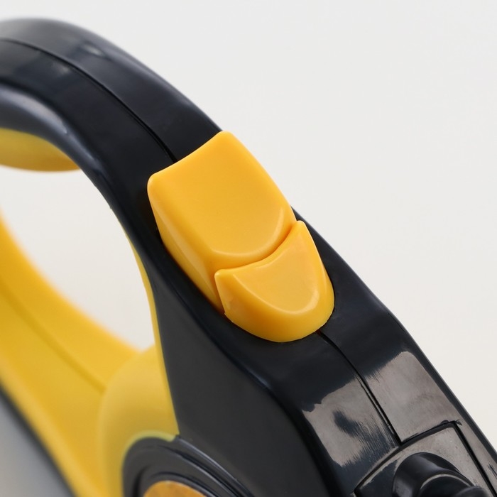 Рулетка обладает прорезиненной ручкой, которая позволяет комфортно и надежно держать руку во время прогулки.