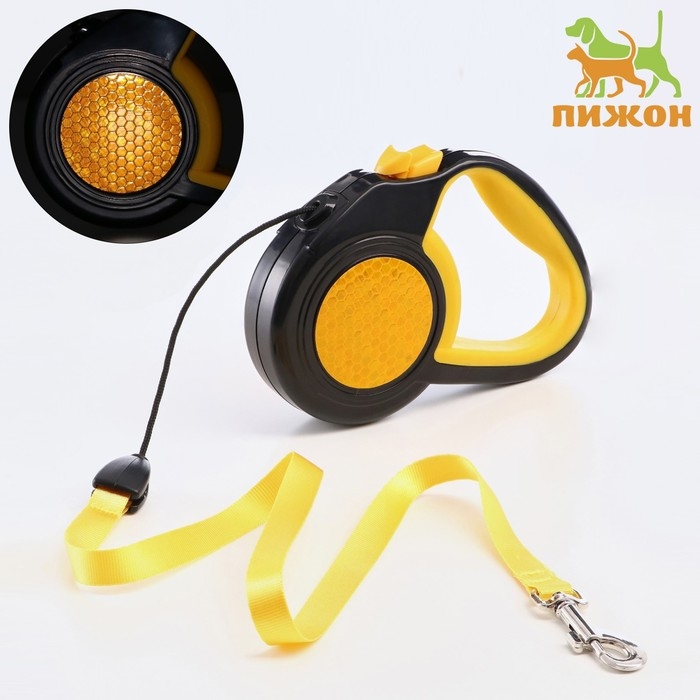 Рулетка "Пижон" светоотражающая, 3 м, до 15 кг, трос, прорезиненная ручка, жёлтая