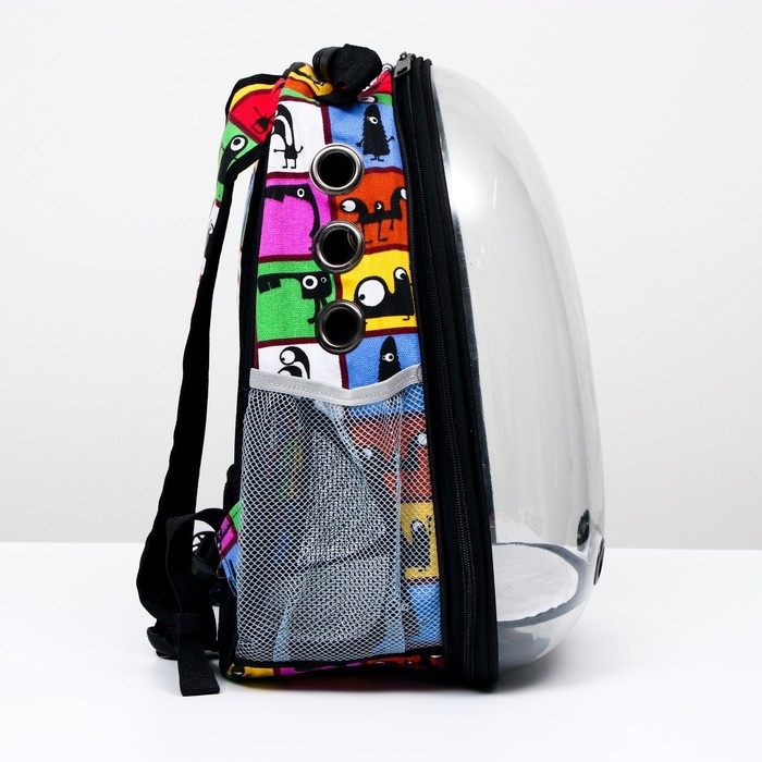 Рюкзак для переноски кошек и собак "Глазастики", прозрачный, 31 х 28 х 42 см