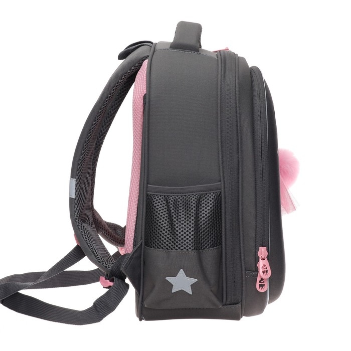 В него поместятся все школьные принадлежности. Основное отделение разбито на три отсека: для книг, тетрадей и папок А4. В дополнительное помещается сменка (есть три кармашка для мелочей). В боковых можно носить воду или перекус. Каждый предмет на своем месте. Ранец отлично подойдёт для первоклассника.