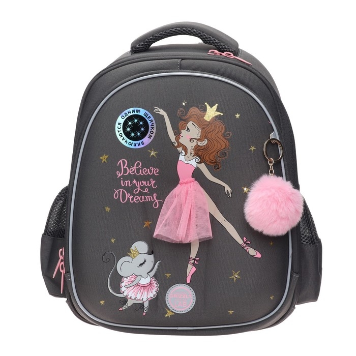 Рюкзак каркасный Grizzly, 36 х 28 х 20 см, светодиодная подсветка с брелоком, серый