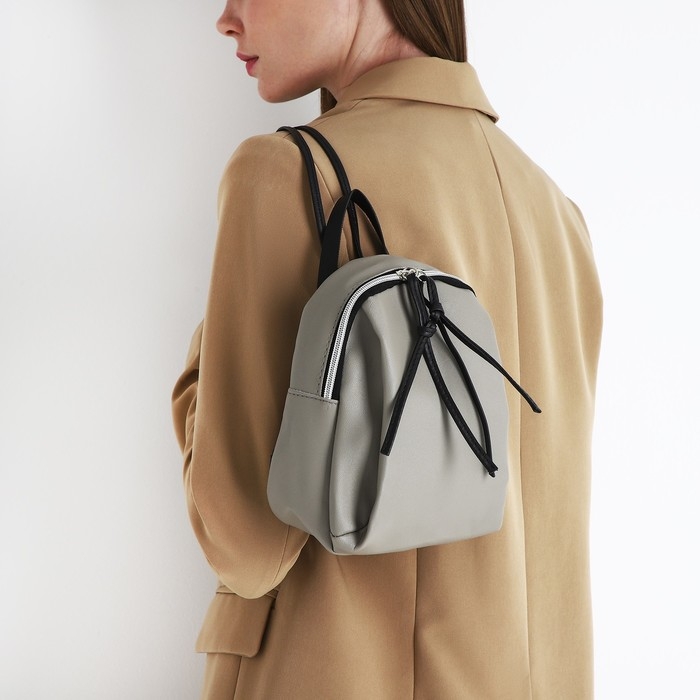 Рюкзак-мини женский из искусственной кожи на молнии, цвет серый