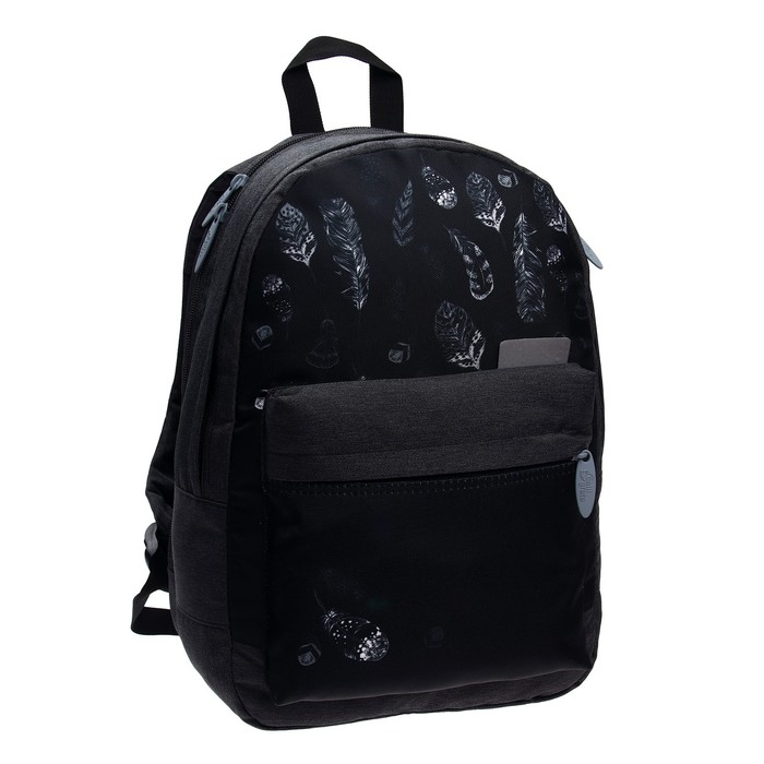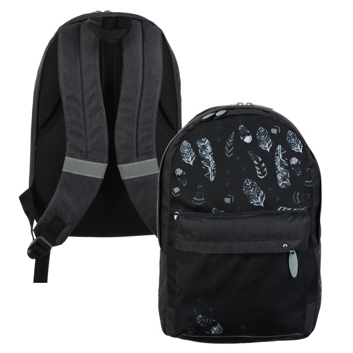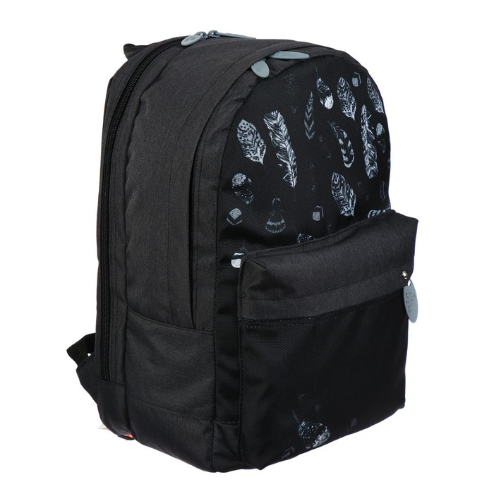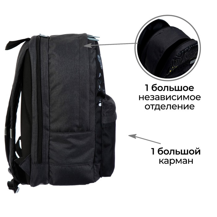 Рюкзак молодёжный, 38 х 28 х 19 см, эргономичная спинка, Calligrata Э "Листья", чёрный
