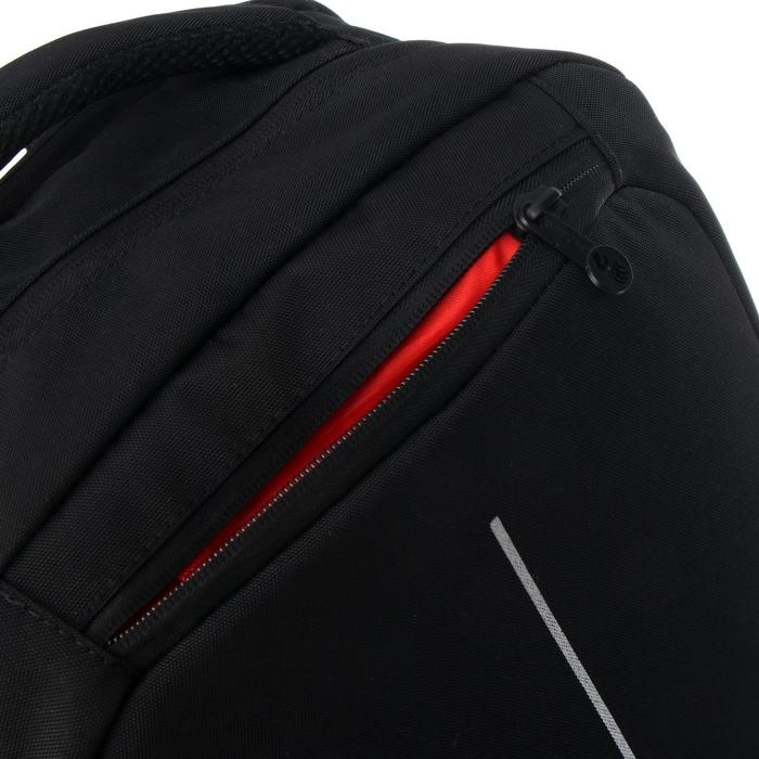Рюкзак молодёжный, два отделения, в том числе отделение для ноутбука, два боковых кармана, внутренний карман для электронных устройств, внутренний держатель для ключей - фастекс, анатомическая спинка, карман быстрого доступа в верхней части рюкзака, дополнительная ручка-петля, нагрудная стяжка-фиксатор, укрепленные лямки, укрепленная ручка, помещается А4, светоотражающие элементы с четырех сторон