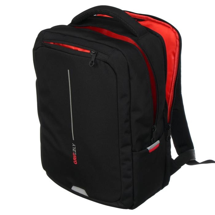 Рюкзак молодёжный, 41,5 х 29 х 18 см, Grizzly 134, эргономичная спинка, отделение для ноутбука, чёрный/красный RU-134-1