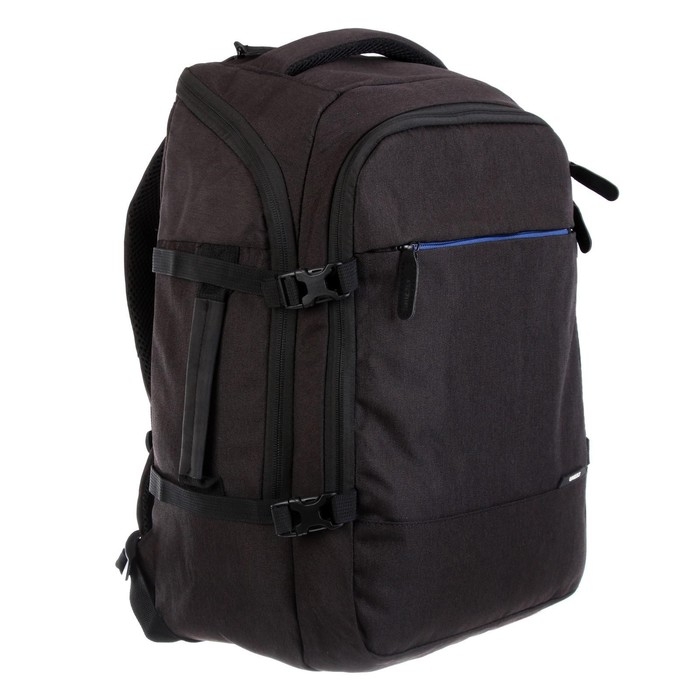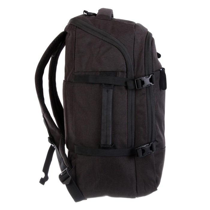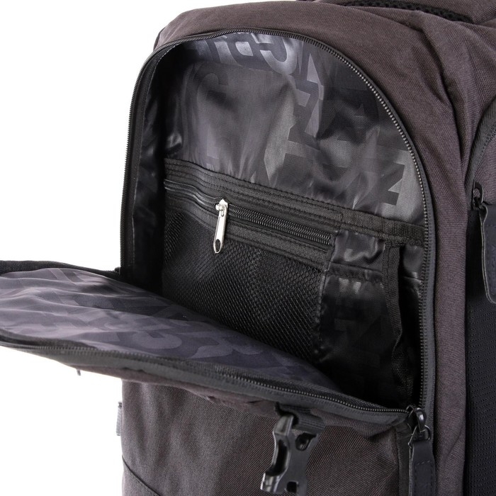 Рюкзак молодёжный, два отделения, карман на молнии на передней стенке, боковой карман, две пары боковых стяжек на фастексах, внутренний держатель для ключей - фастекс, внутренний карман для электронных устройств, внутренний составной пенал-органайзер, укрепленная спинка, карман быстрого доступа в верхней части рюкзака, карман быстрого доступа на задней стенке, дополнительная ручка-петля, мягкая укрепленная ручка, нагрудная стяжка-фиксатор, укрепленная ручка, укрепленные лямки, предусмотрено крепление к чемодану