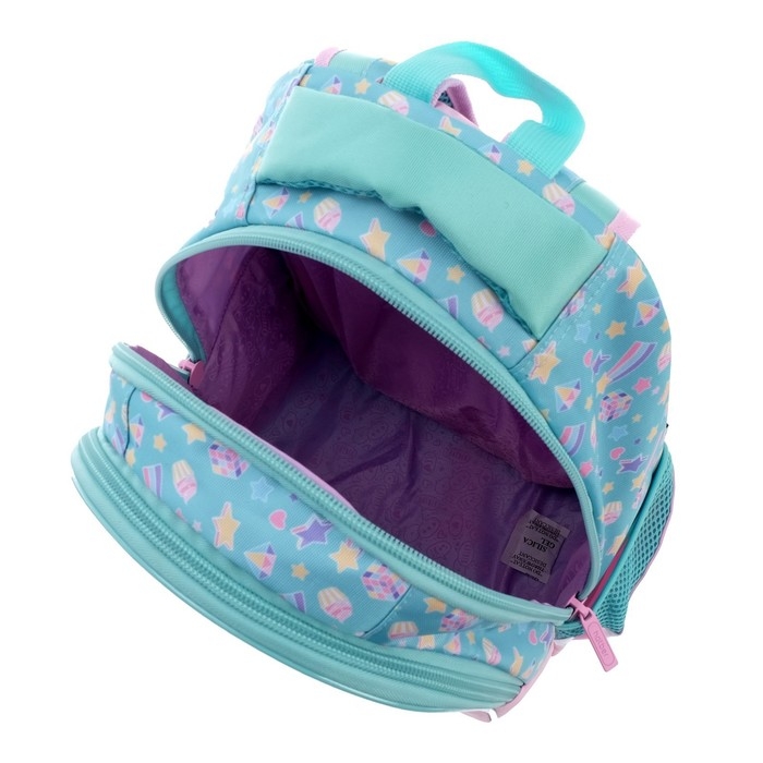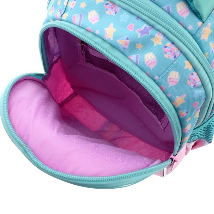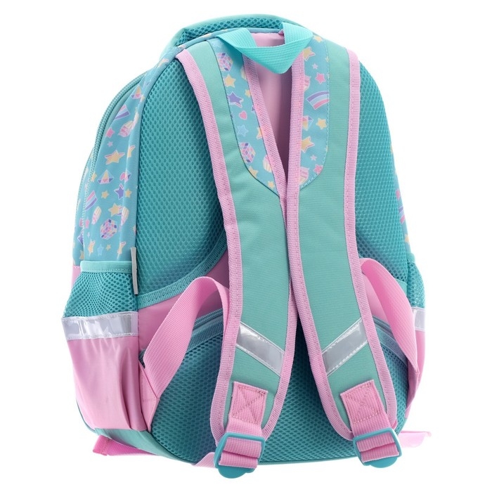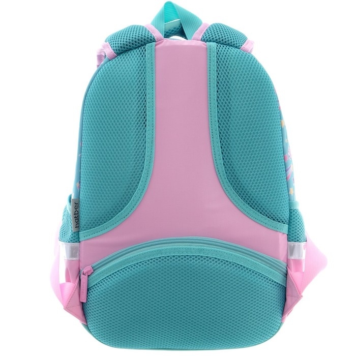 Эргономичная вентилируемая спинка с мягкими вставками, регулируемые лямки, усиленное дно, светоотражающие элементы,крупные удобные молнии, мягкая ручка для переноса и ручка-петля для подвеса. Нагрудная стяжка позволит плотно закрепить ранец на спине школьника. Два вместительных отделения, внутри основного – карман-перегородка, во втором отделении – функциональный органайзер , включающий два кармана на молнии для мелочей и мобильного телефона, отстегивающийся карабин для ключей. Боковые карманы для бутылки с водой или термоса. На спинке имеется потайной карман на молнии – необходимая опция для каждого школьника. Светоотражающие элементы на лямках, передней и боковых частях рюкзака обеспечивают безопасность ребенка на дороге.