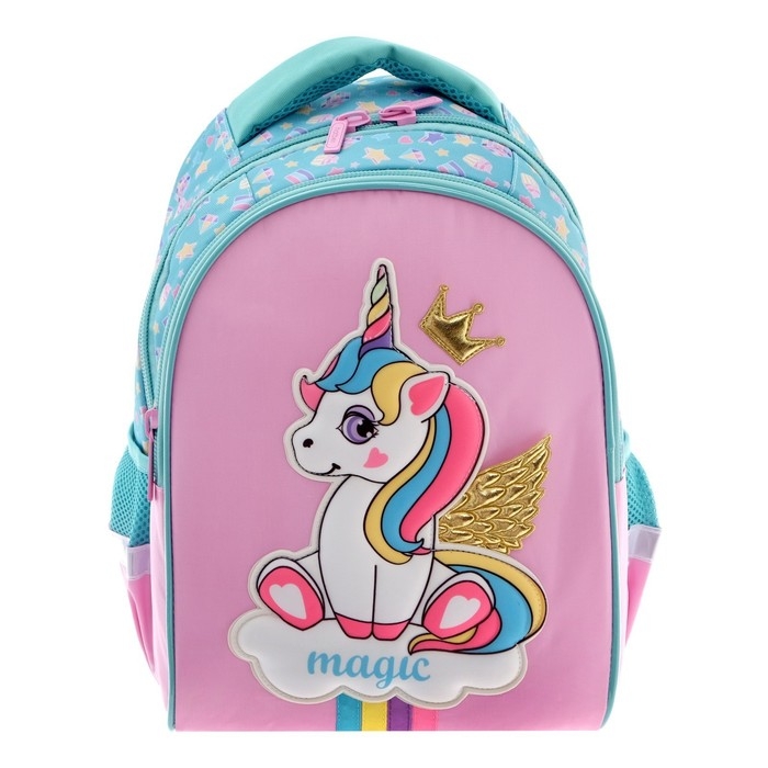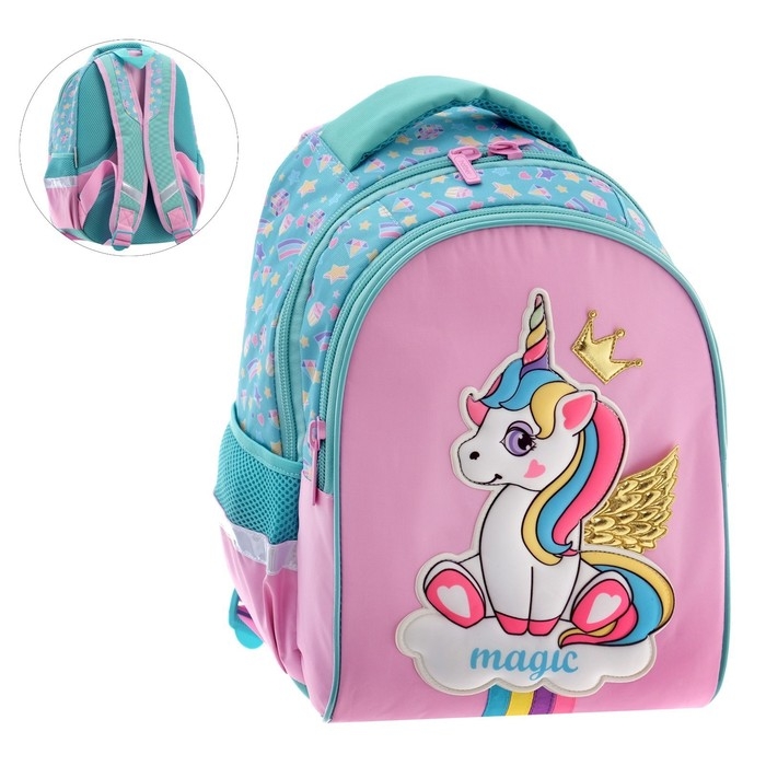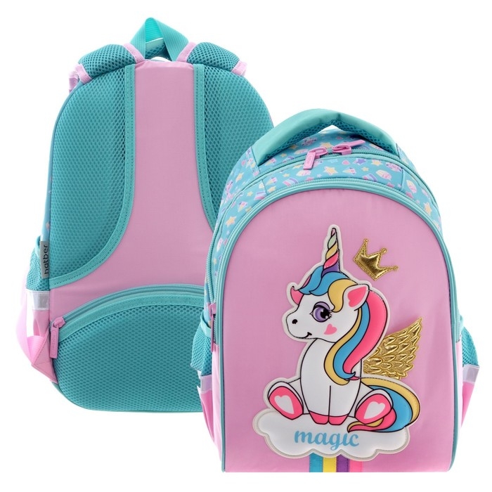 Рюкзак школьный 38,5 х 26 х 17 см, эргономичная спинка, Hatber Primary School "Единорог-принцесса"