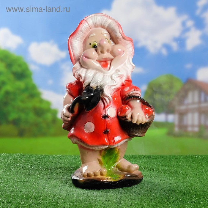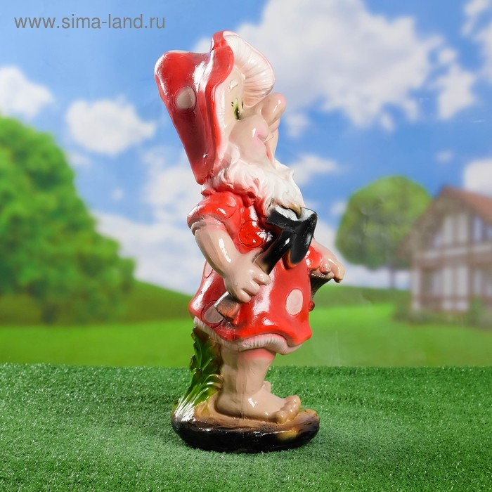 Садовая фигура "Гном-мухомор с лопатой" средний 25х28х52см