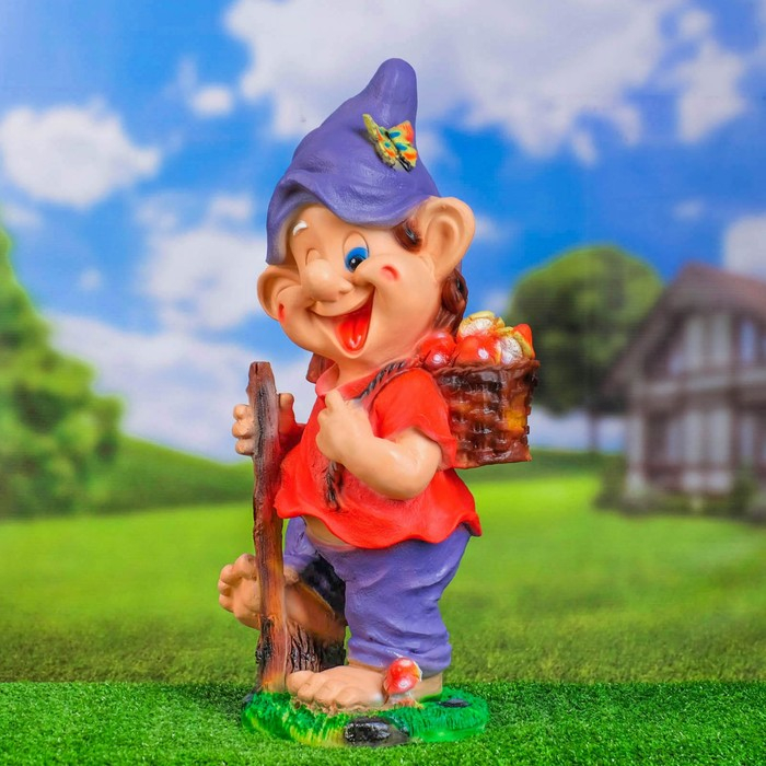 Садовая фигура "Гном с бабочкой", 27х20х55 см,
