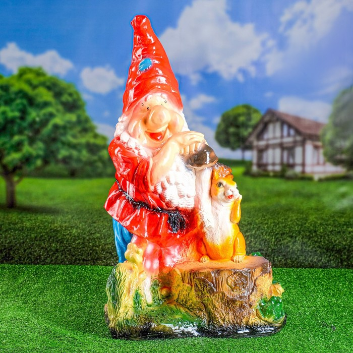 Садовая фигура "Гном с белкой" большая 20х40х75см