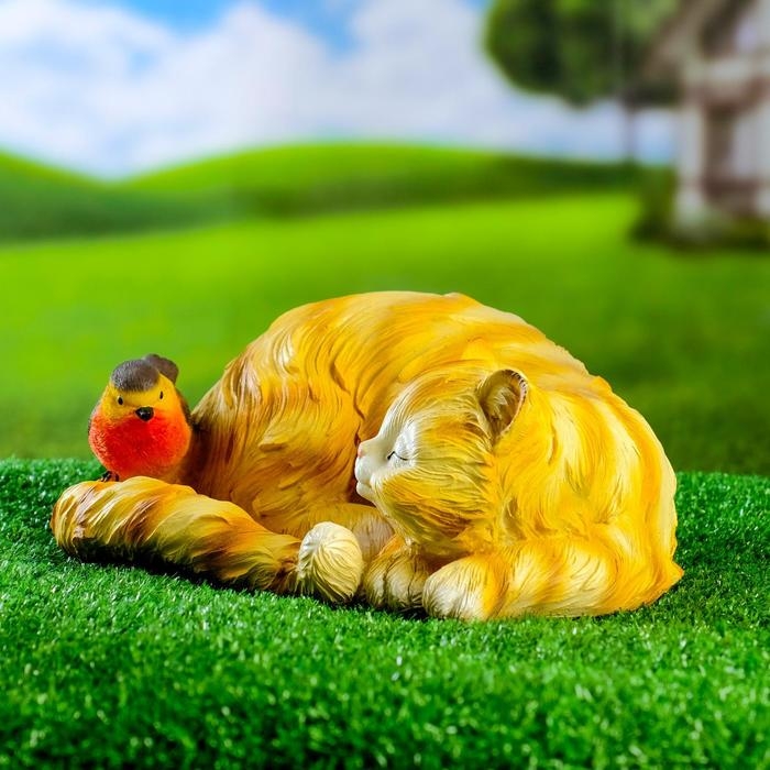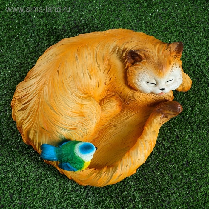 Садовая фигура "Кошка спящая с птичкой" 13х29см