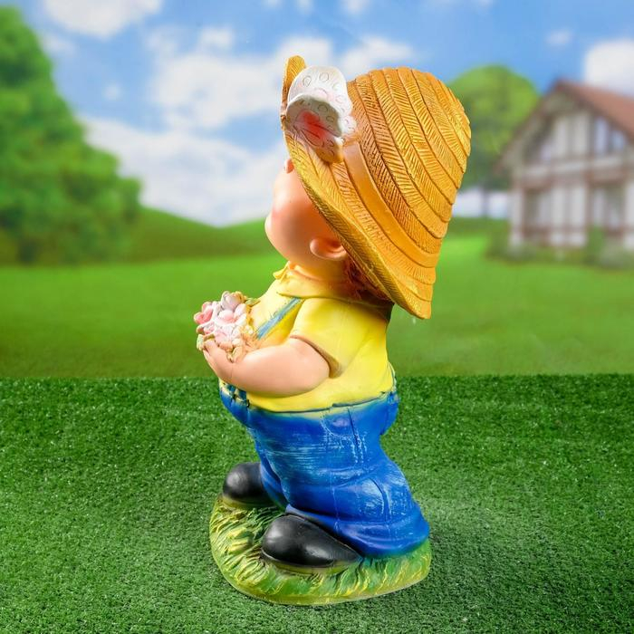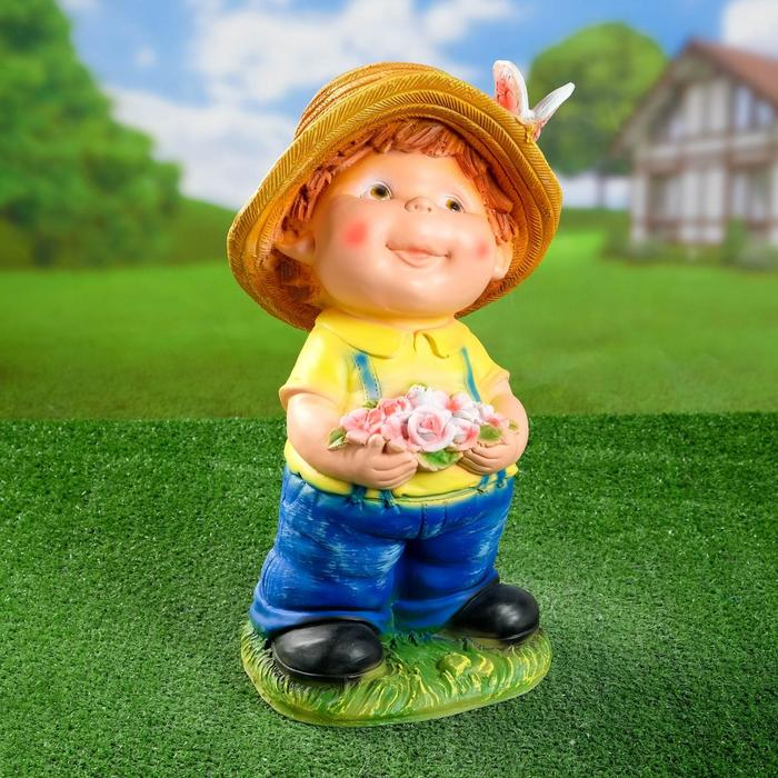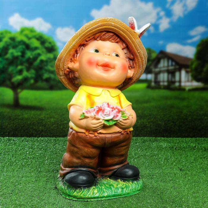 Садовая фигура "Мальчик с цветами" 20х25х46см