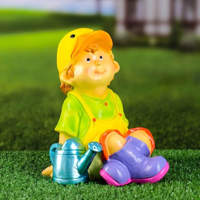 Садовая фигура "Мальчик-гном с лейкой" 13х13х33см