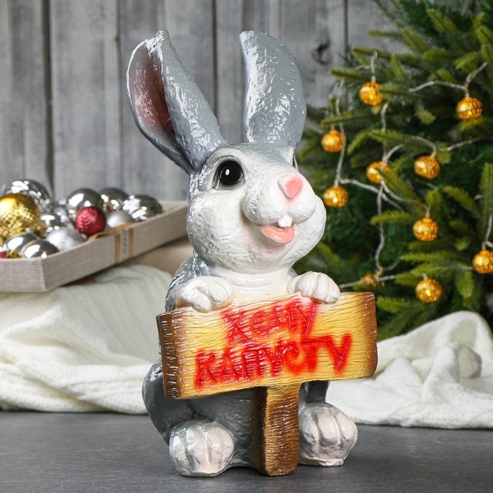Садовая фигура "Заяц хочу капусту" 24х22х42см