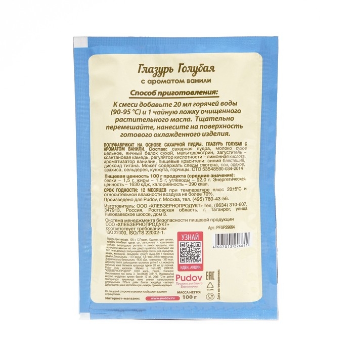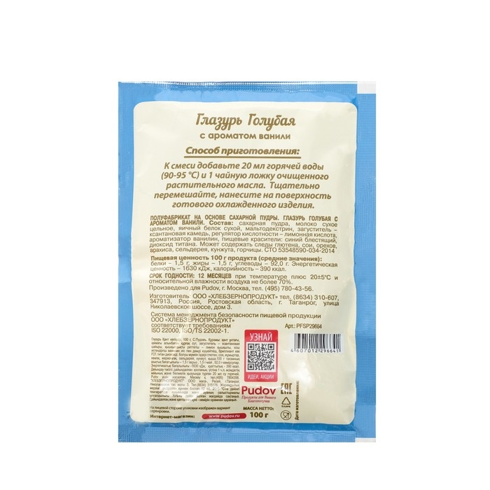 Сахарная глазурь «С. Пудовъ», голубая, 100 г