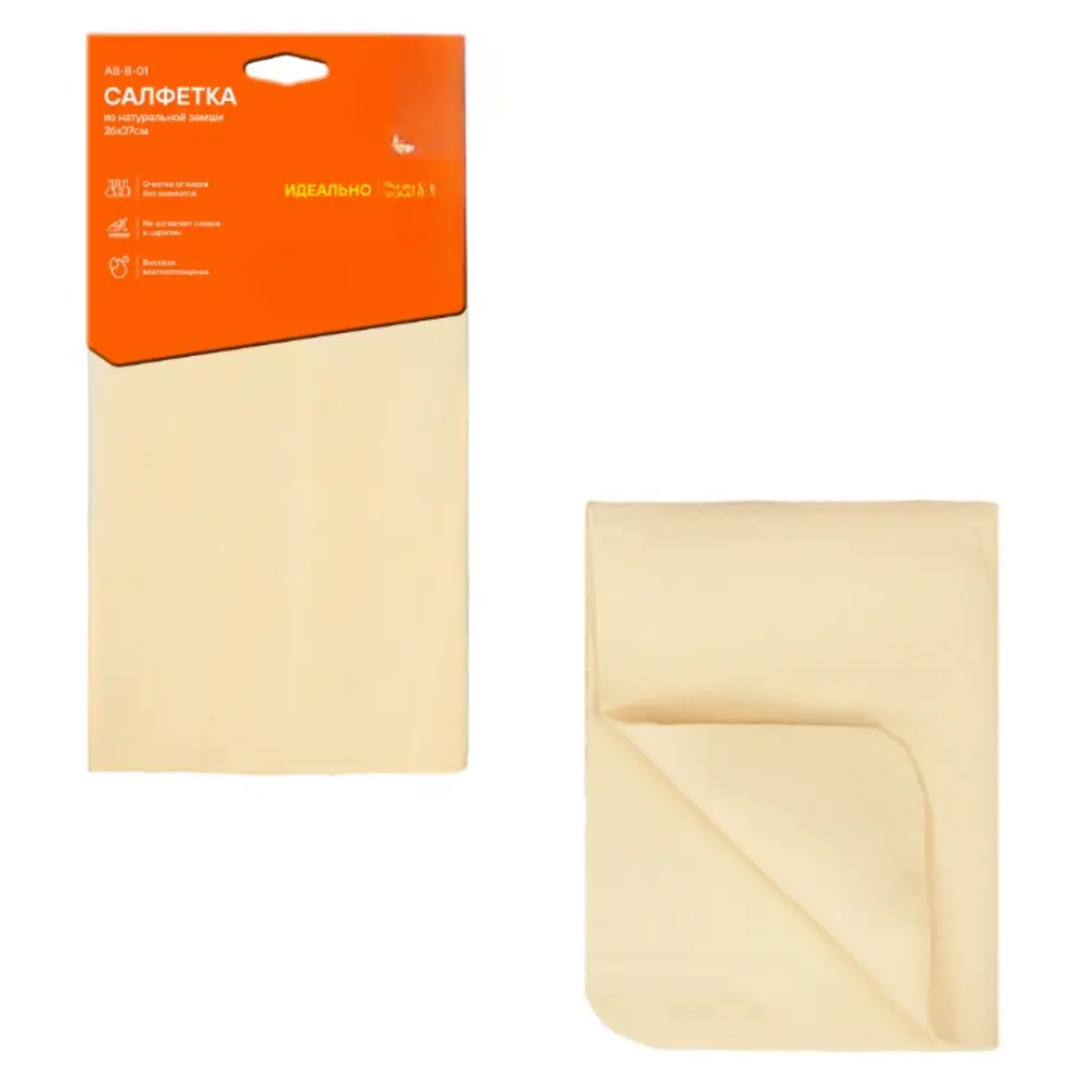 Салфетка из натуральной замши – необходима для бережного ухода за лакокрасочными поверхностями и стеклами. Салфетка деликатно устраняет пыль с поверхности, не оставляя следов ворса или мелких царапин.