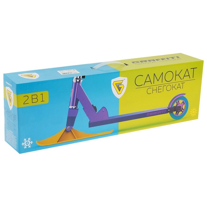 Детский самокат-снегокат — новая модель для летнего и зимнего активного отдыха. Конструкция представляет собой раму самоката, на которую установлены лыжи. Передняя лыжа управляется поворотом руля. Колёса можно установить в любой момент, для этого в комплекте есть всё необходимое.