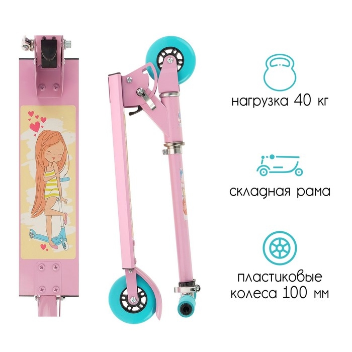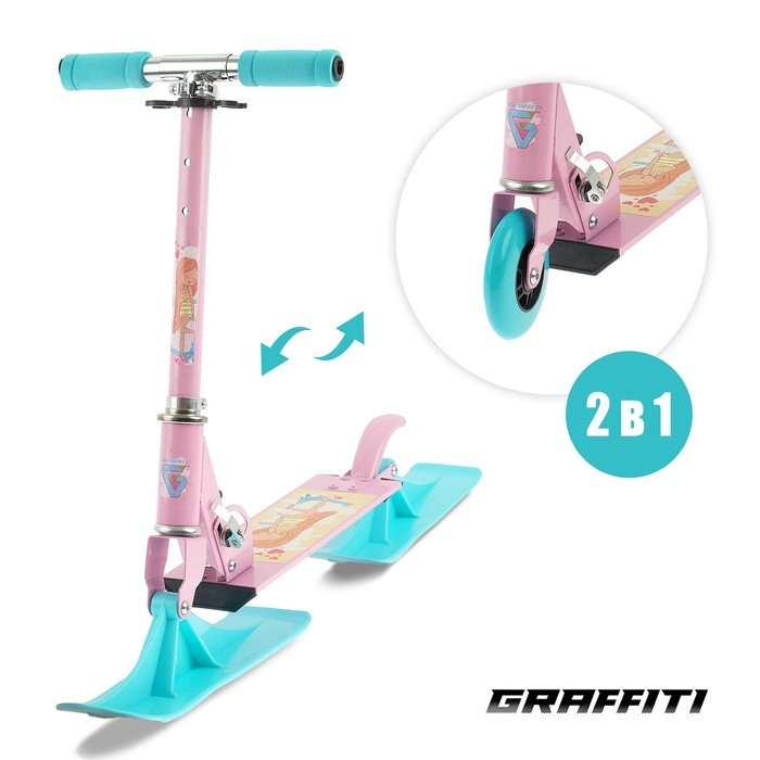 Самокат-снегокат 2 в 1 GRAFFITI «Красотка», цвет розовый