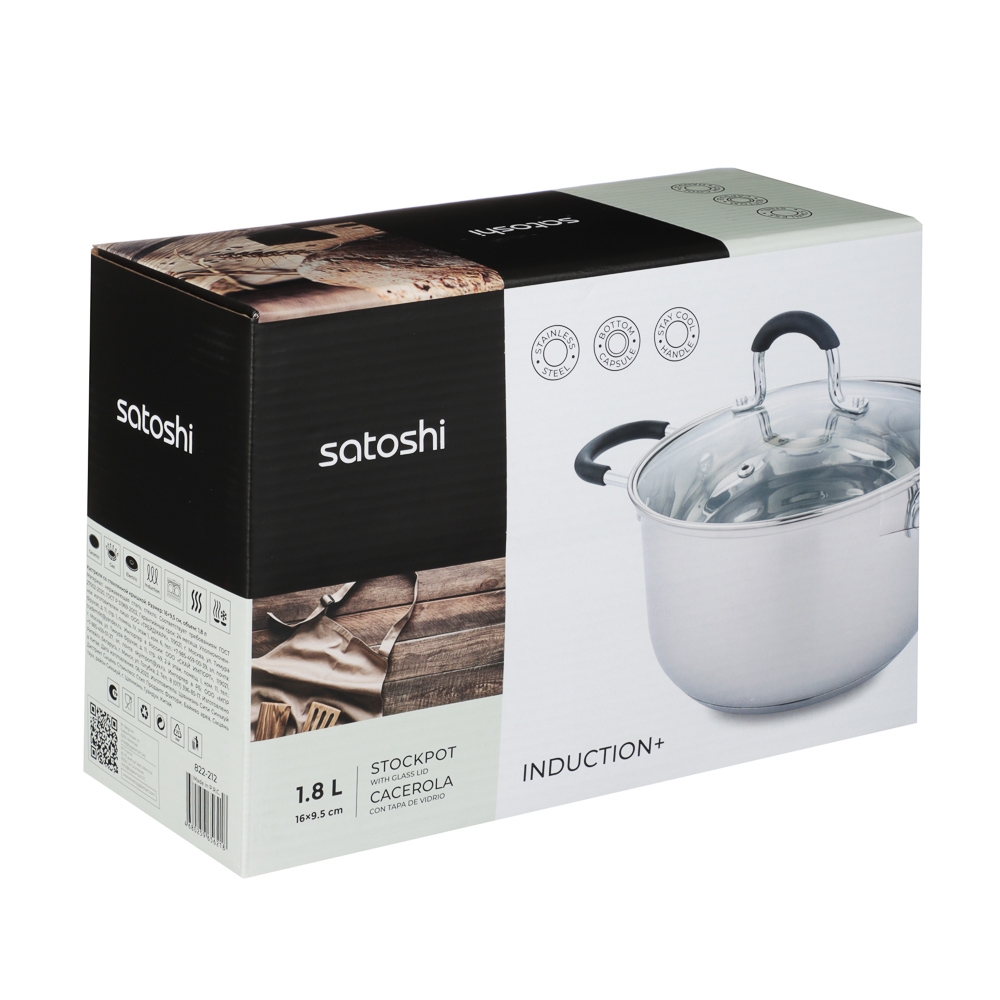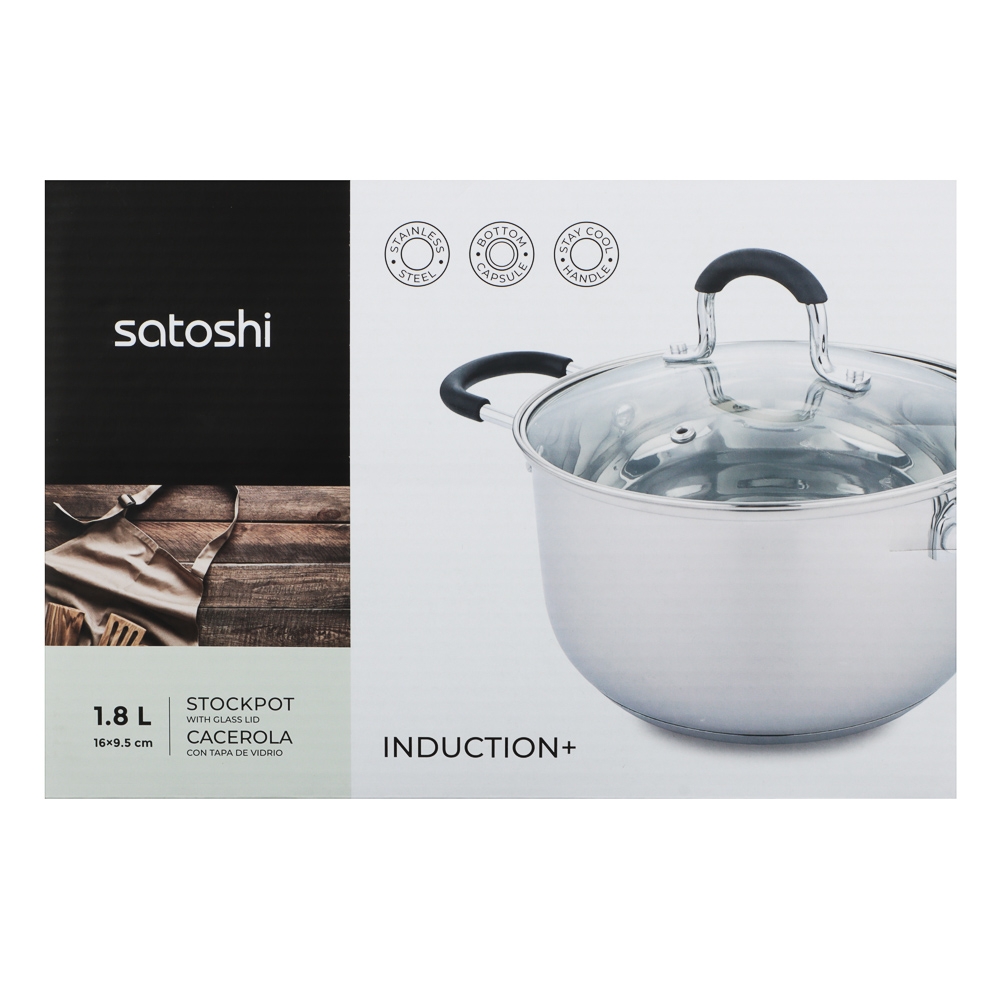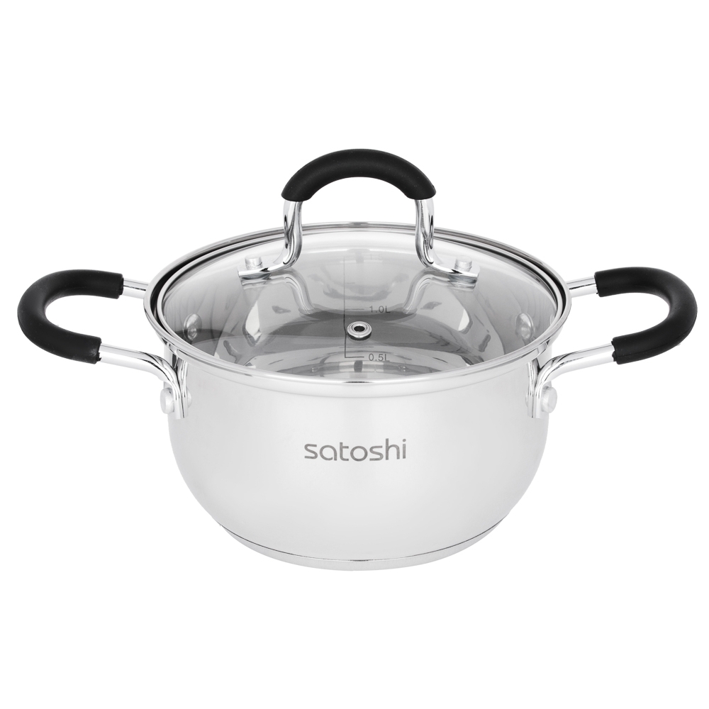 SATOSHI Альбер Кастрюля 16х9,5см, 1,8л, со стекл. крышкой, индукция