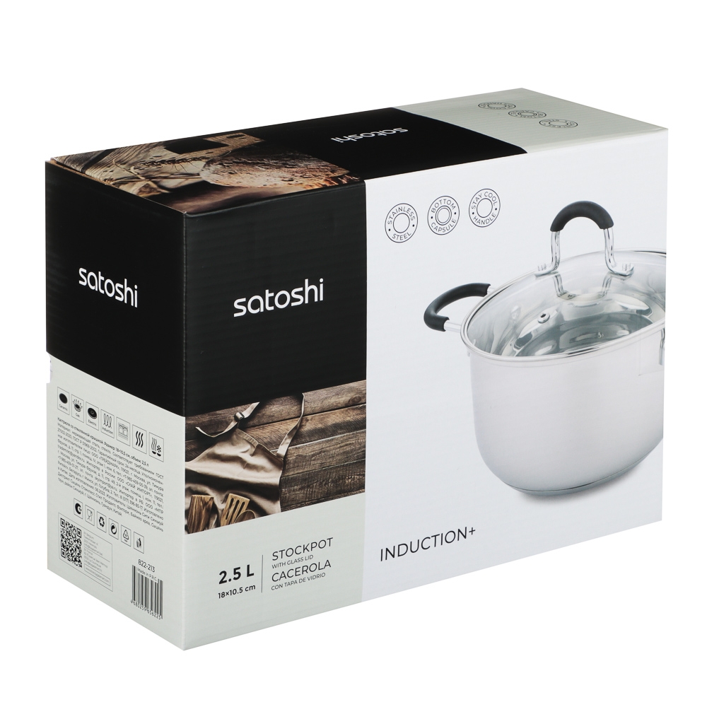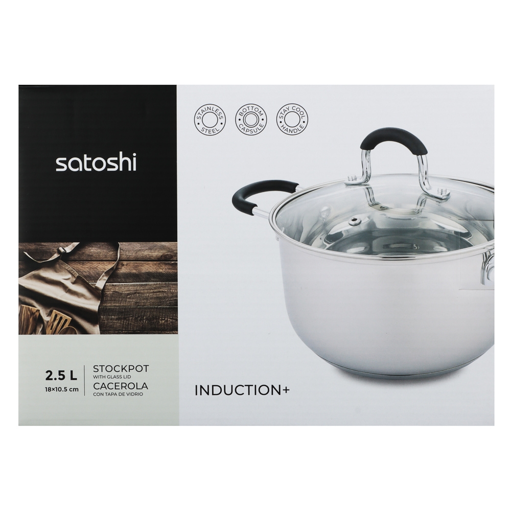 SATOSHI Альбер Кастрюля 18х10,5см, 2,5л, со стекл. крышкой, индукция