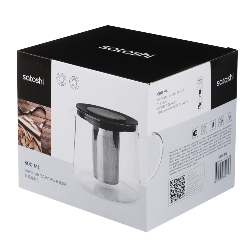 SATOSHI Цейлон Чайник заварочный 600мл, жаропрочное стекло
