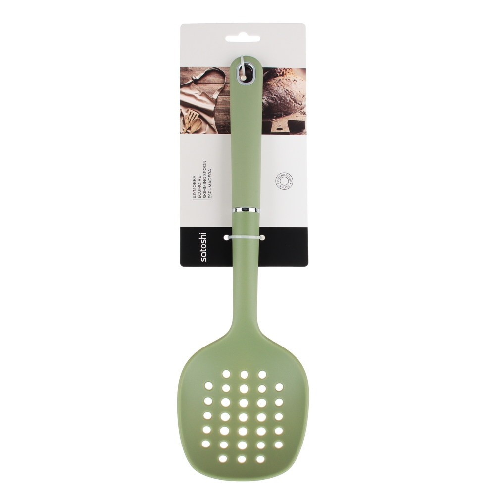 Шумовка SATOSHI «Делано» сделана из качественного нейлона. Чаще всего этот аксессуар применяют для снятия пены или же вынимания мяса и других продуктов из бульона или соуса. Изделие прекрасно подойдет для посуды с антипригарным, тефлоновым или керамическим покрытием. Шумовка SATOSHI «Делано» имеет длительный срок службы. Можно мыть в посудомоечной машине.