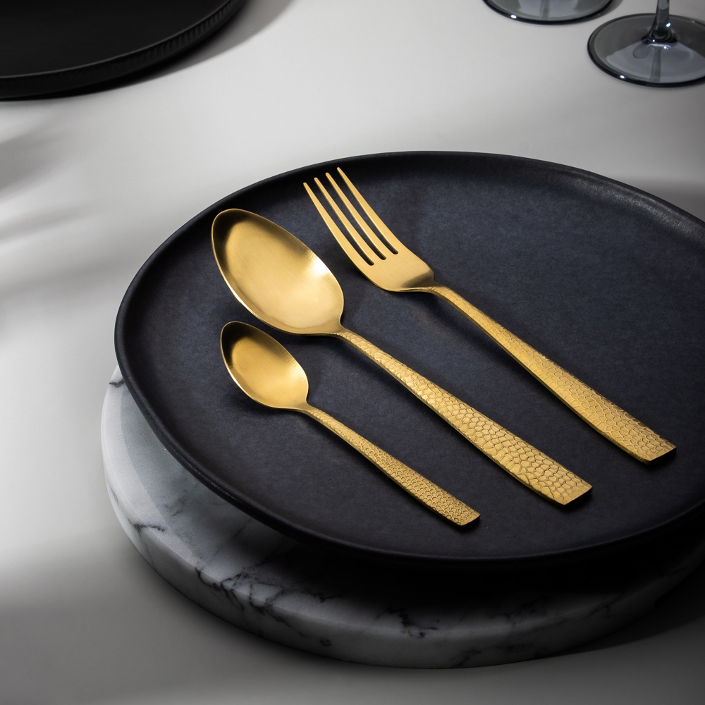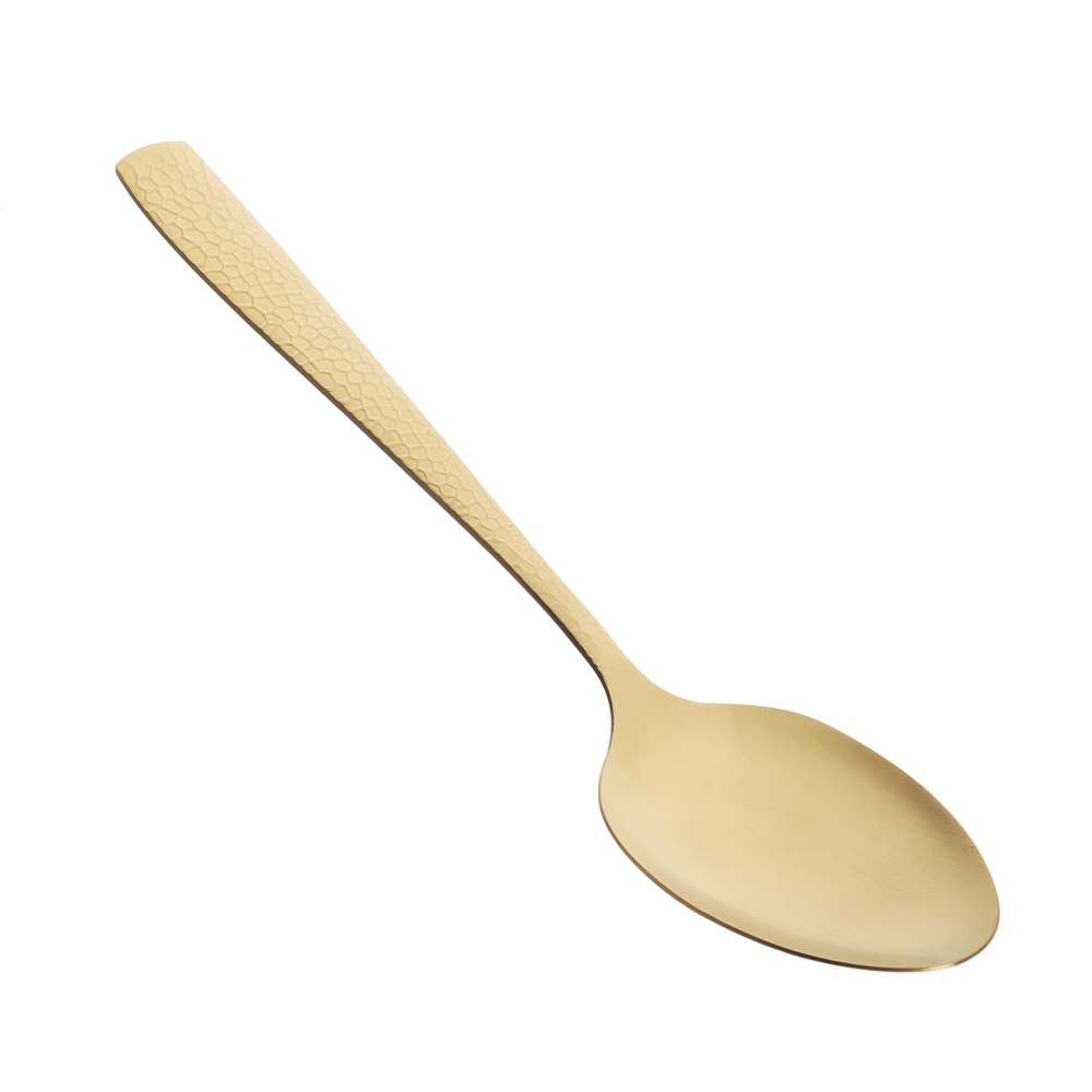 Ложка столовая SATOSHI «Феличе» – оригинальное решение для домашней и ресторанной сервировки. Коллекция «Феличе» – это дизайнерские столовые приборы, которые сочетают в себе эксклюзивность и универсальность, поэтому они будут одинаково выигрышно и уместно смотреться как в винтажной, так и в современной сервировке. Золотой цвет приборов в дуэте с белоснежной посудой и скатертью – воплощение безупречного вкуса. Такой вариант сервировки подходит для особо торжественных случаев. Столовые приборы золотого цвета также идеально сочетаются с цветными аксессуарами и посудой.