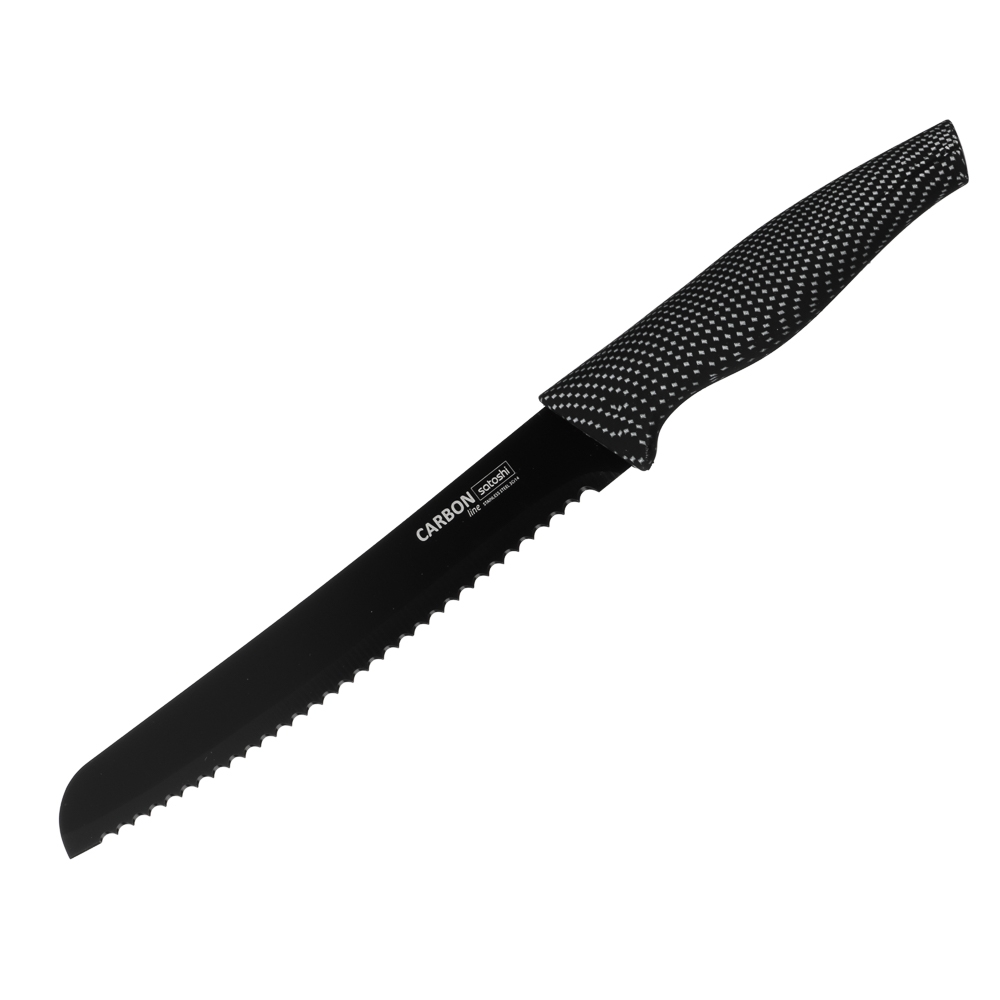 Комплект из 5 ножей и овощечистки SATOSHI Карбон поможет выполнять различные задачи на кухне по разделке, нарезке и шинковке продуктов. Нож-шеф с длиной клинка 20 см удобен для быстрой нарезки овощей, зелени и фруктов. Универсальные ножи 20 и 12,7 см справятся с чисткой овощей и разделкой мяса и рыбы. Маленький нож 9 см удобен для вскрытия упаковок, мелких нарезок и чистки продуктов от кожуры. Хлебный нож 20 см позволит нарезать хлебобулочные изделия на идеальные ломтики без образования крошек. Горизонтальная овощечистка позволяет быстро очистить овощи, а следовательно – ускорить процесс готовки. Лезвия из нержавеющей стали имеют острую заводскую заточку, не подвержены коррозии, а также имеют антибактериальное покрытие. Рукоятки изделий приятно ложатся в руку и не выскальзывают. Набор ножей SATOSHI Карбон – прекрасный подарок для хозяйки, который станет украшением современной кухни.