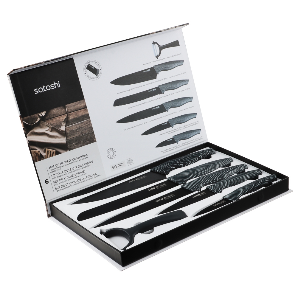 SATOSHI Карбон Набор ножей кухонных 6пр, в магнитной коробке