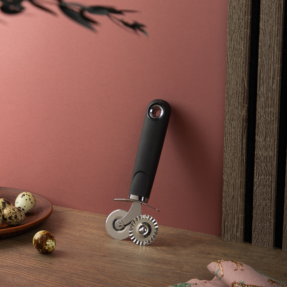 Ролик-нож для теста, 18,5х7,5 см, не только позволит сэкономить время на кухне, также с его помощью домашняя выпечка будет выглядеть, как произведение профессионального кулинара. Достаточно просто раскатать тесто и прокатить по нему валик, чтобы получить красивую ажурную полоску и смастерить из нее аппетитный пирог или украшения для него. Походит для нарезки теста для приготовления вареников, пельменей, пасты.