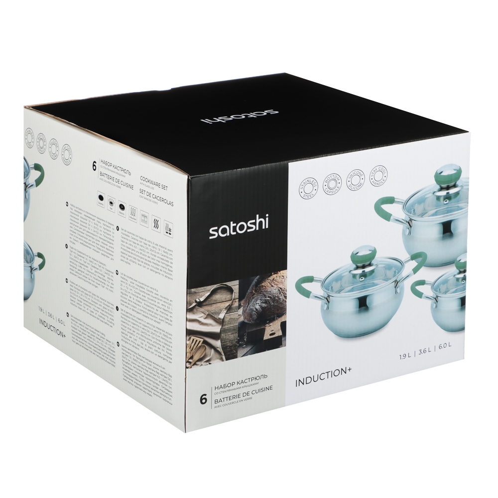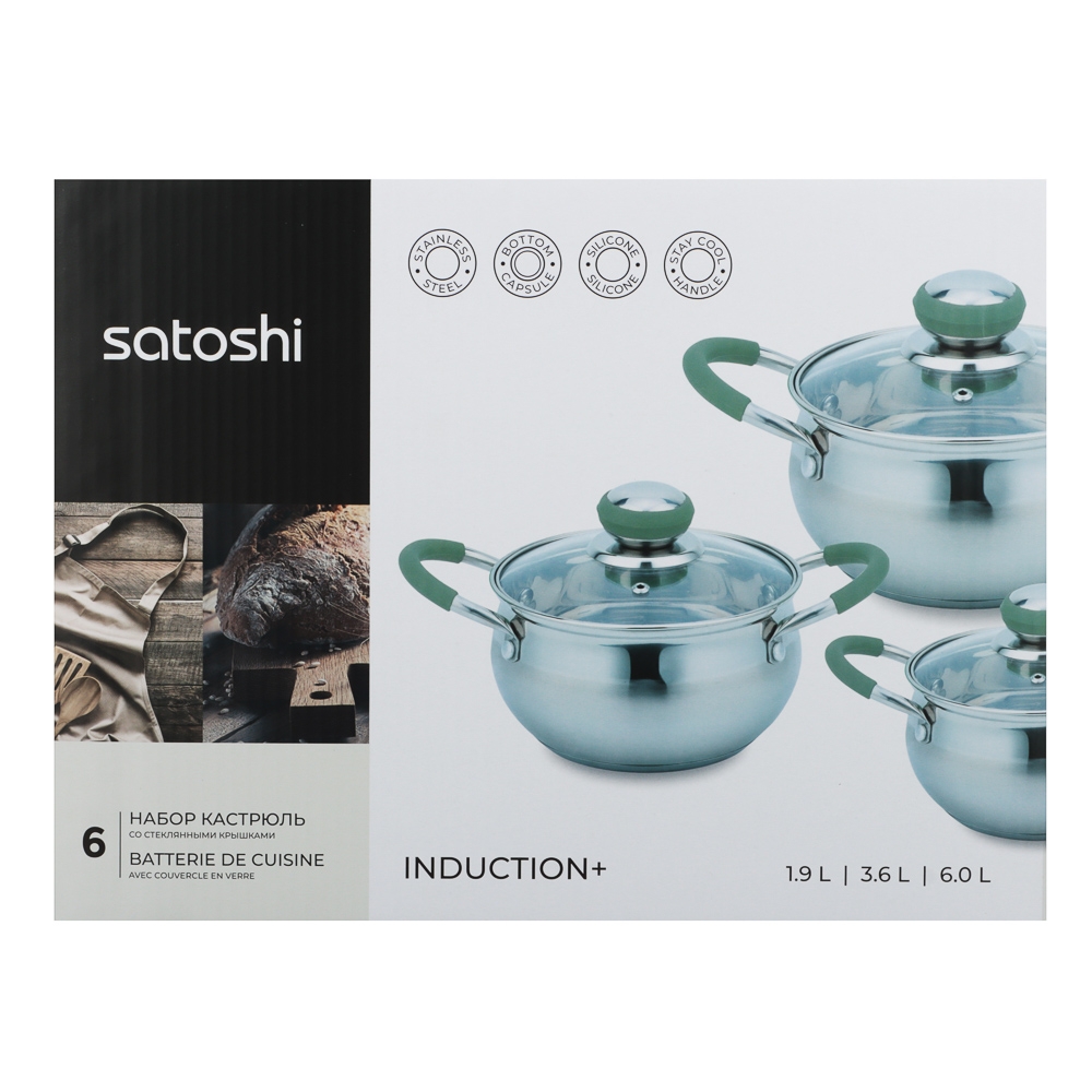 SATOSHI Марли Набор кастрюль 6 пр. (1,9л+3,6л+6,0л) со стекл. крышкой