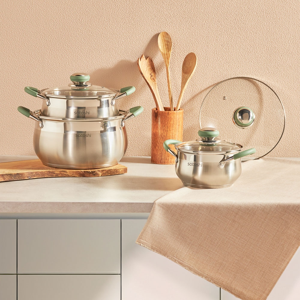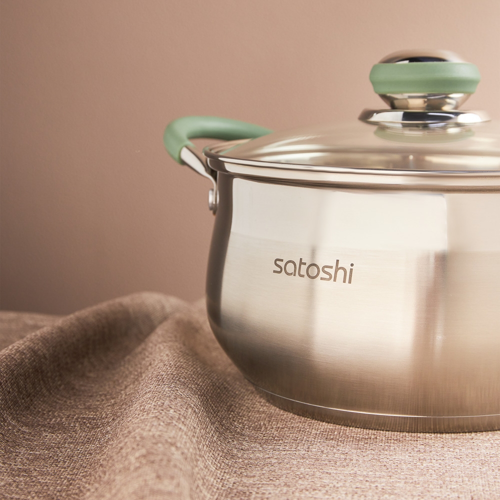 Набор кастрюль Satoshi Марли создан для тех, кто думает о качестве питания, но не забывает про экономию. Посмотрите, какой ансамбль — 3 емкости разного объема — 1,9, 3,6 и 6 литров. Обратите внимание — единый дизайн и все необходимые на кухне размеры. Готовьте первые и вторые блюда, соусы, десерты и сезонные заготовки. Кастрюля на 6 л — идеальное решение для приготовления супа на всю семью. 3,6 л — отличный выбор на каждый день для макарон и каш. Изделие 1,9 л — подходит для приготовления маленьких порций.
