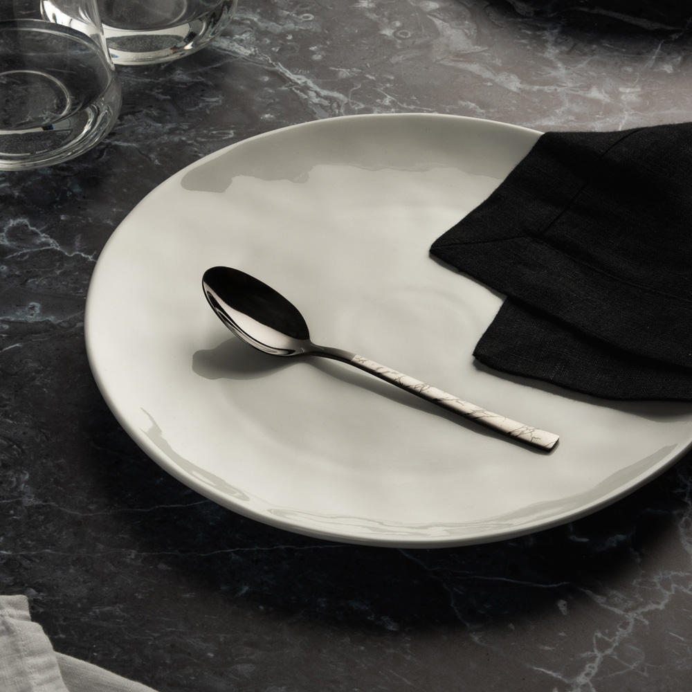 Чайная ложка Satoshi – необходимый предмет сервировки стола, предназначена для размешивания горячих напитков. По правилам этикета чайная ложка располагается справа от тарелки после ножей. Дизайн ложки Satoshi выдержан в стиле Модерн: плавные изогнутые линии, природный орнамент в виде веточек на ручке. Нержавеющая сталь – прочный долговечный материал для столовых приборов. Стильный дизайн, продуманная форма и первоклассный материал делают этот столовый прибор важным гостем на каждом столе.