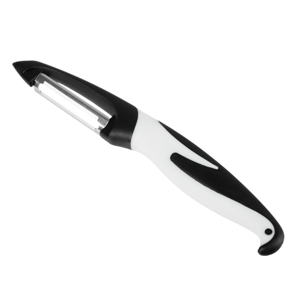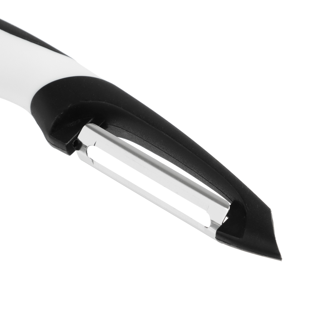 Овощечистка SATOSHI вертикального типа длиной 18 см сочетает надежность и удобство. Лезвие из нержавеющей стали легко справляется с чисткой овощей и фруктов, обеспечивая точность и минимальный расход продукта. Эргономичный черно-белый корпус из полипропилена удобно лежит в руке, позволяя комфортно работать даже с большим объемом продуктов. Практичное решение для тех, кто ценит простоту и эффективность в кухонных аксессуарах.
