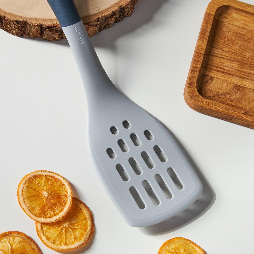 Кулинарная лопатка SATOSHI «Ривьера» из нейлона со специальными прорезями идеально подходит для работы со сковородой или смешивания салата. Незаменимая вещь на кухне каждой хозяйки. Термостойкий пластик не боится температурного шока и не впитывает запахи, и его легко мыть вручную или в посудомоечной машине. Эргономичная ручка посуды обеспечит удобный хват, предотвращая выскальзывание из рук.