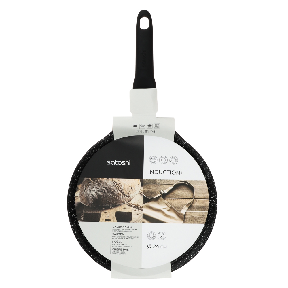 SATOSHI Стоун Сковорода литая блинная d24см, антипригарное покрытие Мрамор, индукция