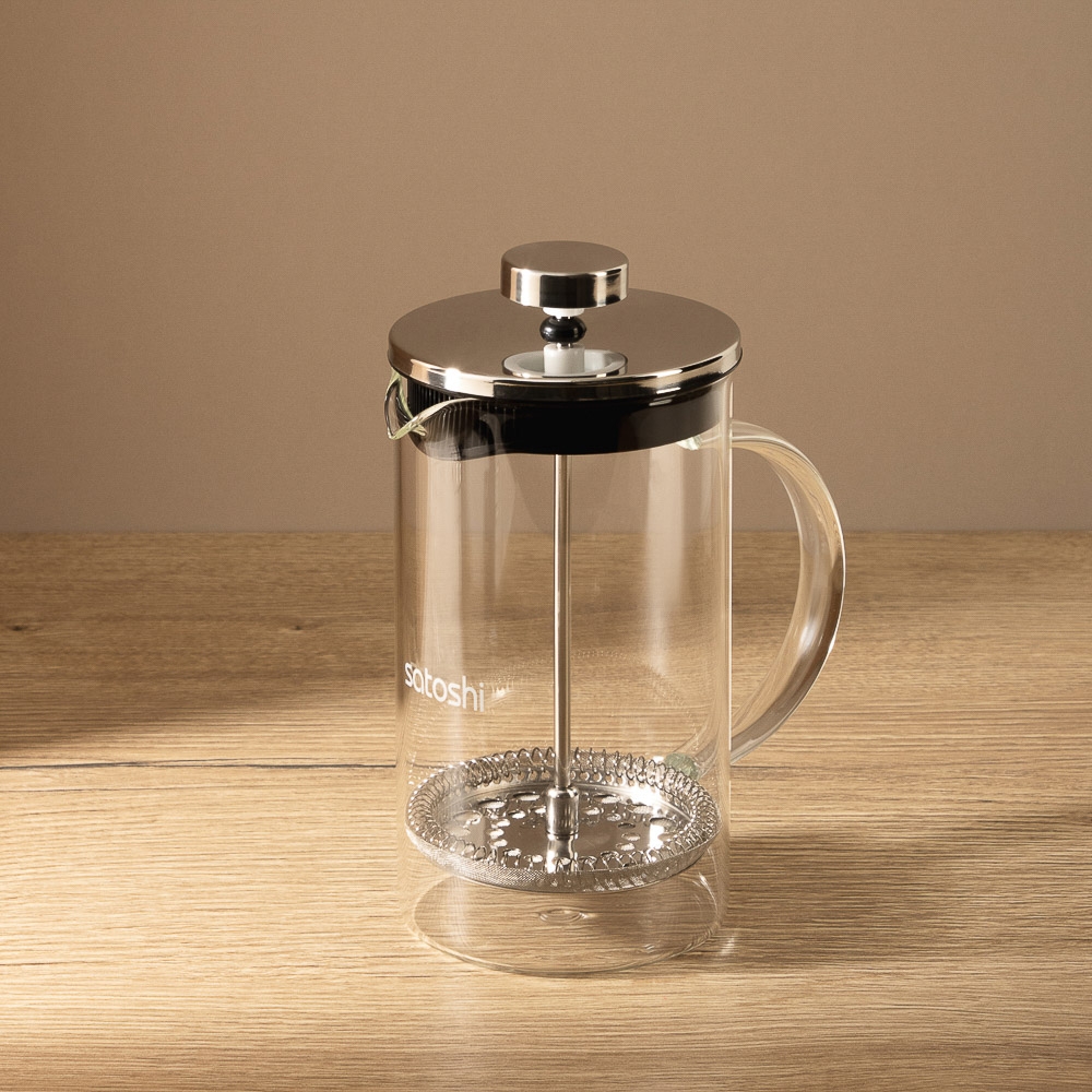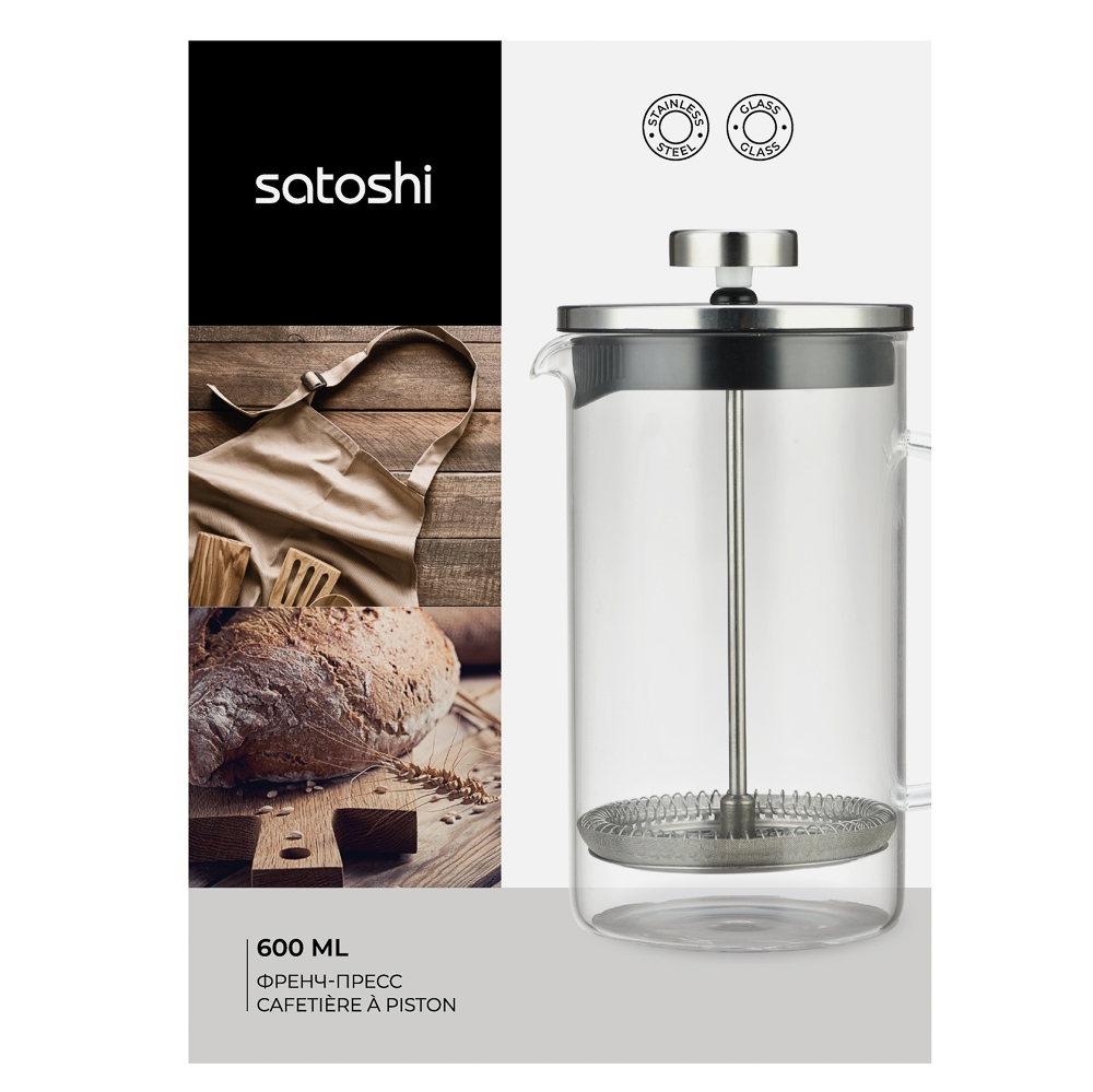 Френч-пресс SATOSHI Тэмму объемом 600 мл в стеклянном корпусе, с фильтрующим поршнем из нержавеющей стали, подходит для заваривания кофе и чая.