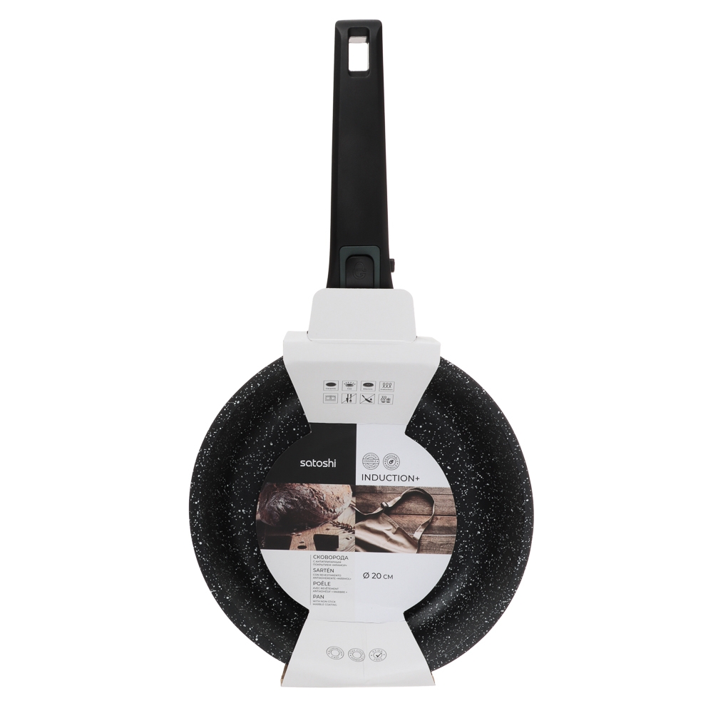 SATOSHI Уран Сковорода литая d20см, антипригарное покрытие Мрамор, индукция, съемная ручка