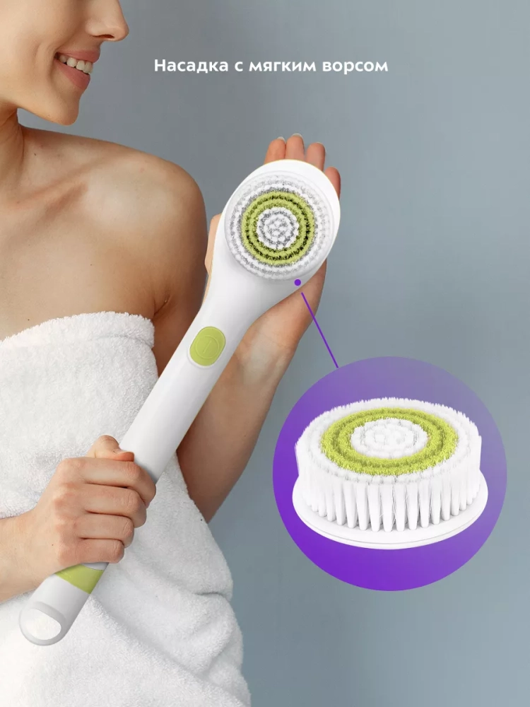 Щетка-массажер для тела аккуратно и тщательно очищает кожу от загрязнений, не растягивая ее, и мягко удаляет омертвевшие клетки верхних слоев кожи. Вибрация при работе прибора стимулирует кровообращение, снимает усталость, оставляя кожу гладкой, упругой и сияющей.