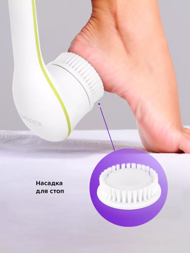 Щетка-массажер KT-3161 оснащена защитой от воды IPX6, что позволяет использовать ее в душе. В комплекте идет шесть насадок для разных потребностей и участков кожи. Насадку-мочалку можно использовать вместо обычной мочалки — благодаря вибрациям насадка-мочалка тщательней очищает кожу, не травмируя ее. Насадка для стоп поможет справиться с мозолями, огрубевшей кожей и трещинами на пятках. Насадка с мягким ворсом и насадка-щеточка с силиконовой рабочей поверхностью предназначены для мягкого глубокого очищения кожи. Отшелушивающая насадка поможет отшелушить кожу. Массажная насадка предназначена для массажа.