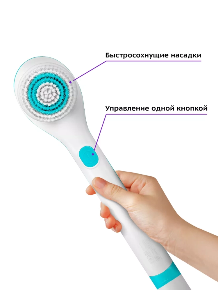 Рабочие поверхности насадок не травмируют кожу, быстро сохнут и легко очищаются. Благодаря эргономичной форме корпуса прибор удобно держать в руках.