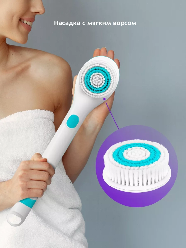 Щетка-массажер для тела аккуратно и тщательно очищает кожу от загрязнений, не растягивая ее, и мягко удаляет омертвевшие клетки верхних слоев кожи. Вибрация при работе прибора стимулирует кровообращение, снимает усталость, оставляя кожу гладкой, упругой и сияющей.