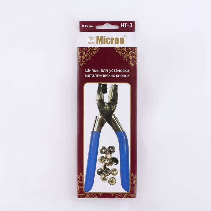 Щипцы для установки металлических кнопок Омега, с кнопками, d = 15 мм, цвет голубой, HT-3